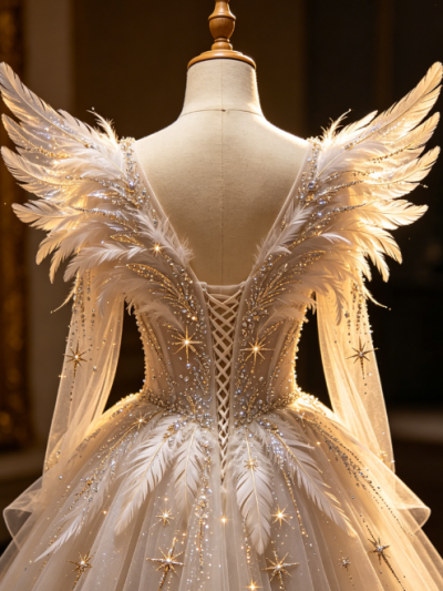 Starlight Wings · Sheer Feather-Back Gown